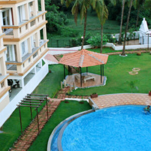 We stayed here as a group of five 19 year old and didn’t feel out of place among the families living here. Quality of the apartment was great, pool was lovely & the gym was more than adequate. Kitchen area was basic and cutlery, but we were comfortably able to self cater for the week we stayed. Very close to club Cubana and the Saturday night market, but it was around a 20 minute walk to calangute beach. It is relatively cheap to get a taxi there however, which Ravi happily arranges for you, so overall I’d definitely recommend it over places closer to the beach as it has a much more relaxed & enjoyable vibe, perfect after the busy days / nights out. Also our apartment had a washing machine for clothes which was an unexpected bonus.